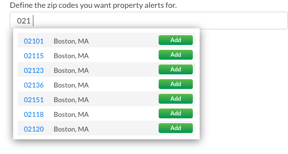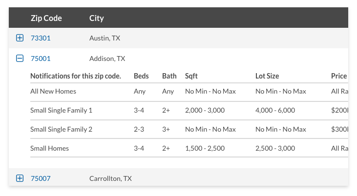 Once you unlock a zip code you can be notified about custom searches you’ve saved under that zip code.