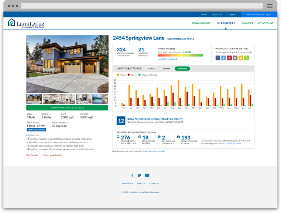 With zero committment to list your home for sale, you can create a profile and share it to see how warm the waters are.